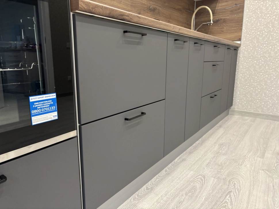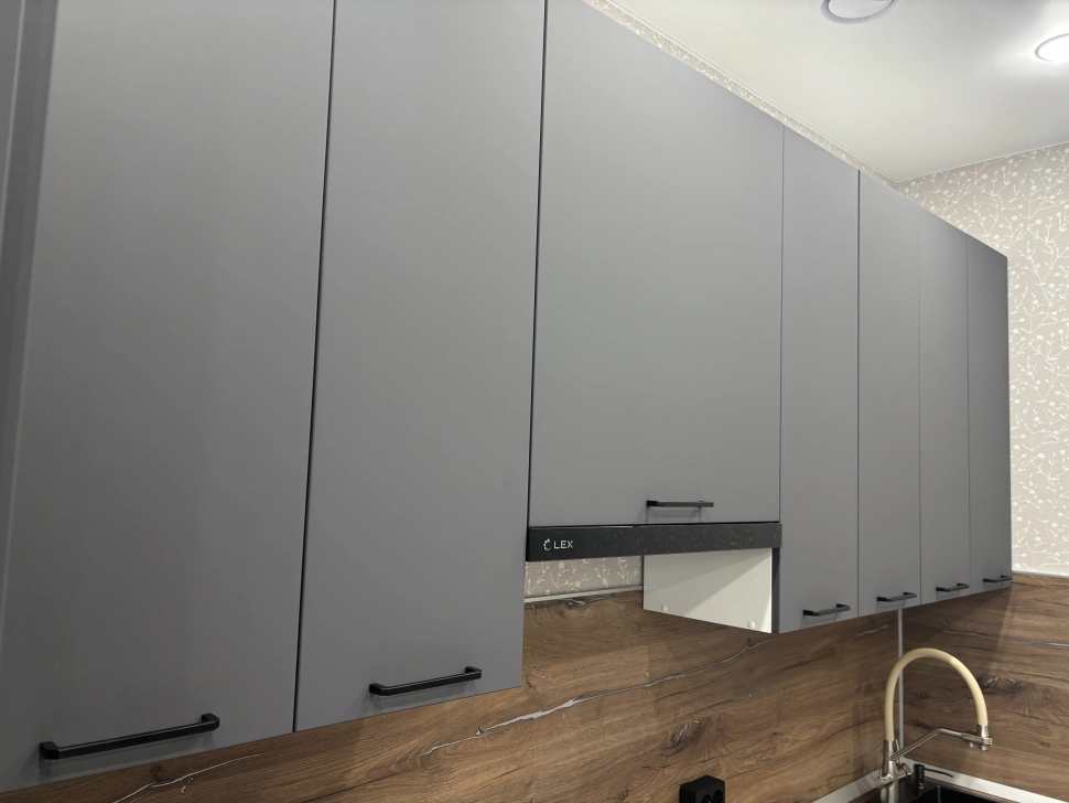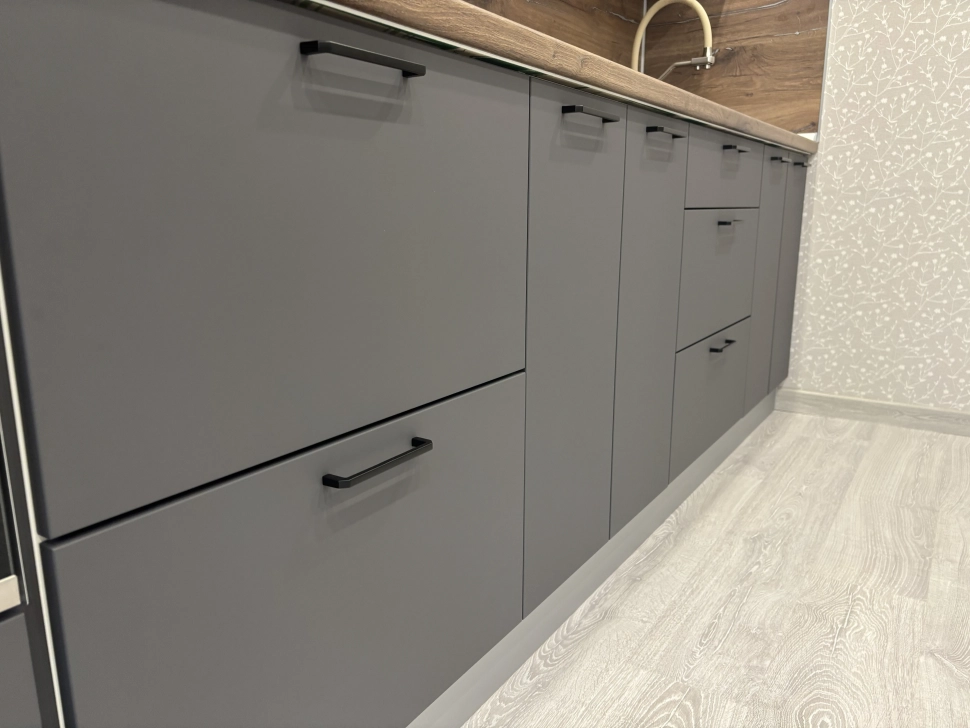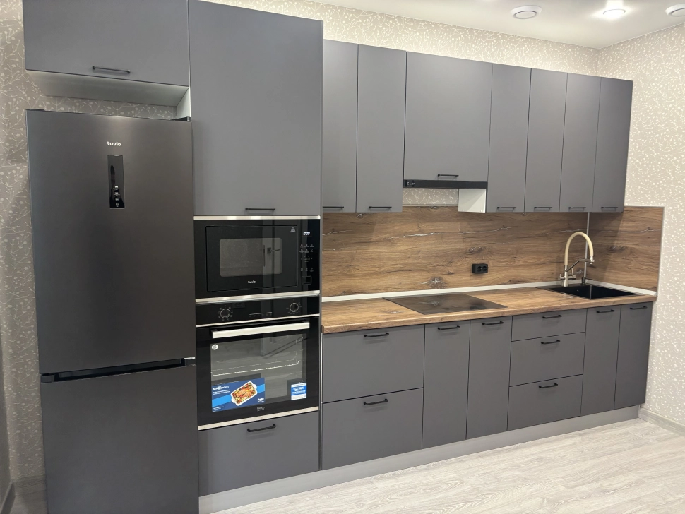 Кухня Модерн New с высокими шкафами в цвете Графит и сочетании с Дубом Эдда