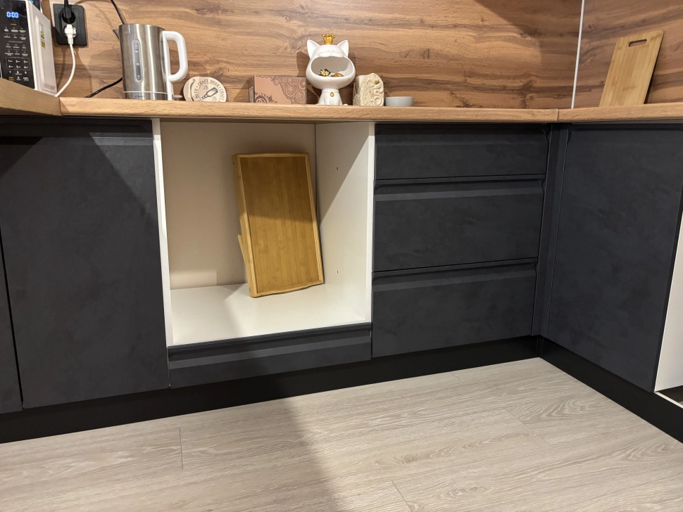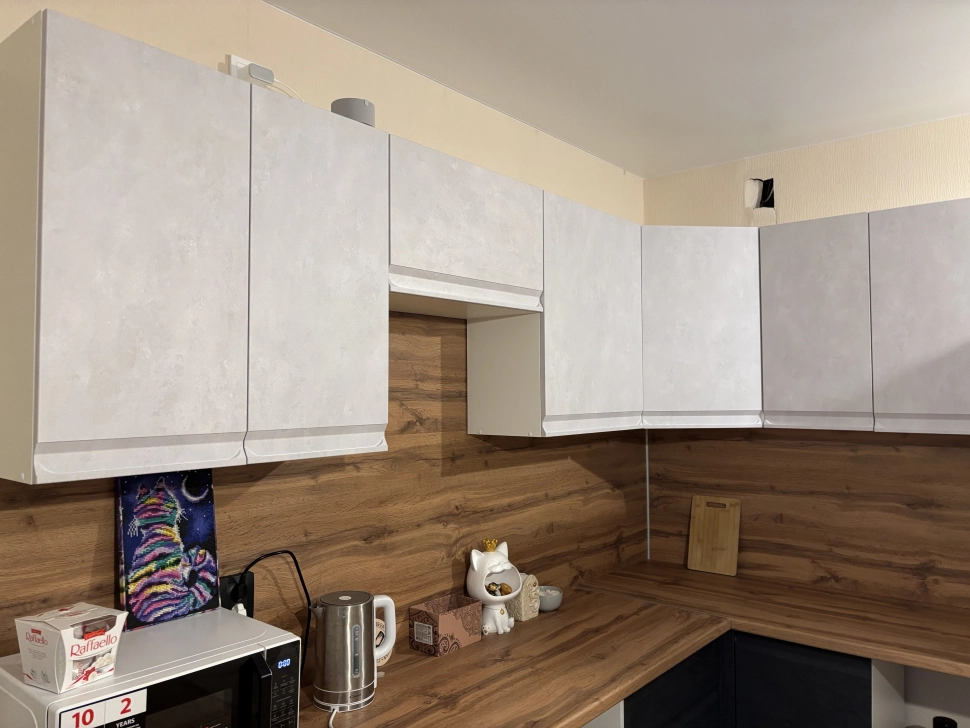 Кухня Вельвет под Бетон с барной стойкой Дуб Вотан