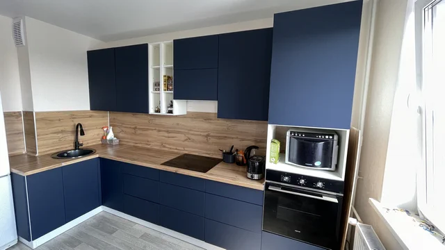 Фасады из МДФ с покрытием soft-touch обладают повышенной износостойкостью и приятной текстурой. Поверхности устойчивы к отпечаткам пальцев и жировым пятнам, сохраняя безупречный вид даже при интенсивной эксплуатации.