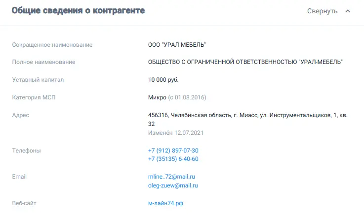 Мы не имеем отношение к компании ООО "УРАЛ-МЕБЕЛЬ" ИНН - 7415094626, эти реквизиты так же используются в договоре.