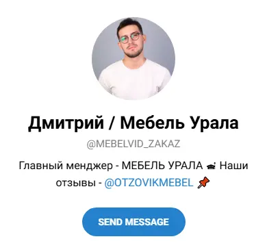 Представляются чаще всего Дмитрием "Мебель Урала", ссылки на его аккаунты в телеграмме: